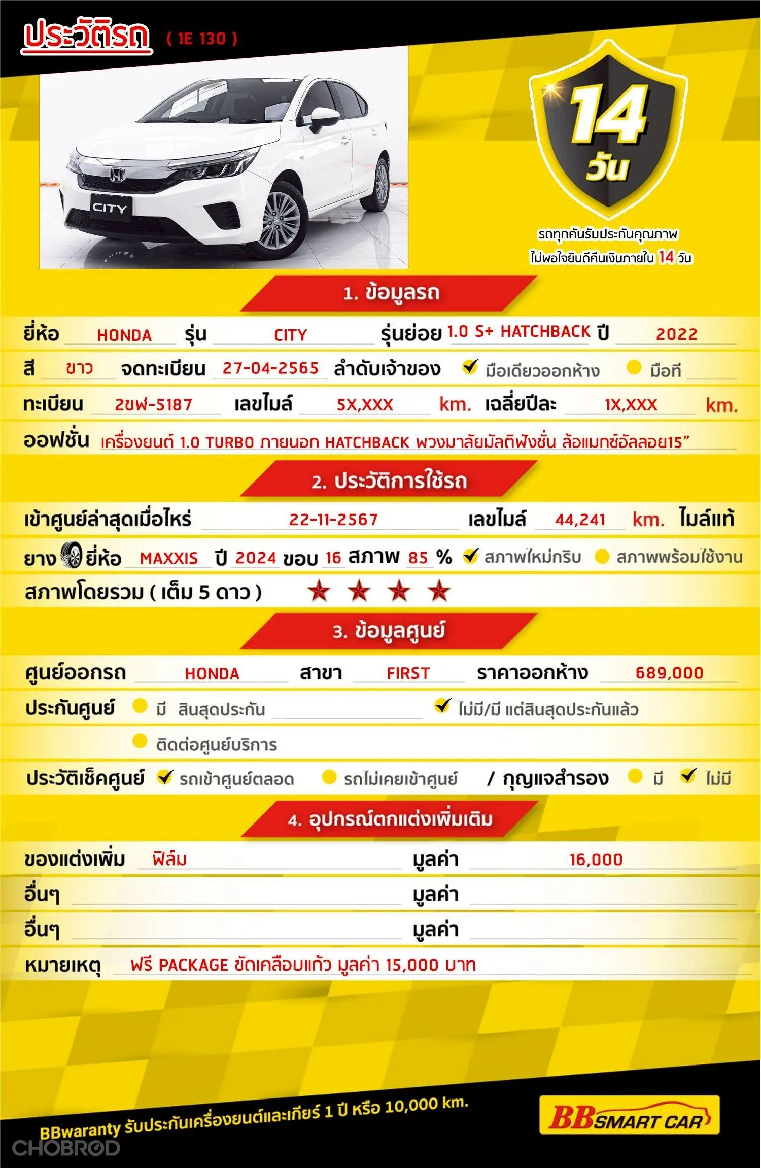 1E130 HONDA CITY 1.0 S+ HATCHBACK AT 2022