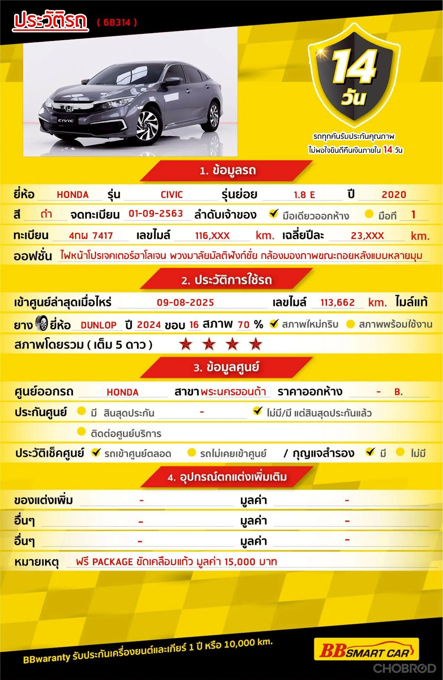 HONDA CIVIC FC 1.8 E AT 2020 ออกรถ 0 บาท จัดได้ 549,000 บ. Line:@bbcar06 🔥จอง 199 บาท ส่งบัตรประชาชน รู้ผลพิจารณาภายใน 30 นาที ไม่ผ่านคืนเงินจองทุกกรณี 🔥ซื้อรถกับ BB พร้อมให้คำปรึกษา แก้ทุกปัญหา ให้ทุกเรื่อง บริการ call center 24 ชม. 🔥BB Care Plus รับประกันหลังการขาย สูงสุด 2 ปี หรือ 20,000 km.. 🔥มีรถให้เลือกมากกว่า 1,800 คัน สาขา 6 ศูนย์รวมรถยนต์ไอคาร์สยาม กาญจนาภิเษก รหัสรถ 6B314 ราคา 529,000 บาท ผ่อนเพียง 9,023 บาท Brand. : HONDA Year. : 2020 Model. : CIVIC FC Grade. : 1.8 E Engine. : 1,800 CC Type. : เบนซิน Gearbox : AT Color. : เทา Mileage. : 116,xxx KM. (ซื้อสด ราคานี้ยังไม่รวมค่าดำเนินการ 10,000 บ.) 🚩 Price. 529,000 บาท ยอดจัด : 539,000 บาท เงินดาวน์ : 0 บาท ประกันภัย : ฟรีประกันภัย 1 ปี ค่าดำเนินการ : 10,000 บาท รวมออกรถ : 0 บาท ผ่อน 36 = 17,361 บาท ผ่อน 48 = 13,356 บาท ผ่อน 60 = 11,097 บาท ผ่อน 72 = 9,927 บาท ผ่อน 84 = 9,023 บาท เงื่อนไขเป็นไปตามที่ไฟแนนซ์กำหนด โปรโมชั่นพิเศษ สำหรับลูกค้าเครดิตดี 🚩เลือกรับเรทดอกเบี้ยพิเศษ 📍36 งวด = 1.29 % 📍48 งวด = 1.99 % 📍60 งวด = 2.39 % 📍72 งวด = 3.59 % 🔥 เงื่อนไข โปรโมชั่น ดอกเบี้ยเริ่มต้น 1.29% ตลอดอายุสัญญา - ยอดจัดไฟแนนซ์ 300,000-600,0000 บาท - ผ่อนสูงสุด 72 เดือน - เป็นลูกค้าประวัติดี พนักงานประจำเงินเดือน 20,000 ขึ้นไป - ค่าดำเนินการแคมเปญ 20,000 บาท (รวมในยอดจัดได้) 🎗Car Hightlight รถสวยๆ วันนี้ขอแนะนำ HONDA CIVIC FC 1.8 E AT 2020 ออฟชั่น 12.2.1 : 1. ดีไซน์ภายนอกที่โดดเด่น +เส้นสายทันสมัย Honda Civic โฉม 2020 มีการออกแบบที่ดูสปอร์ตยิ่งขึ้น ไฟหน้า-ไฟท้าย รูปทรงตัวถังลาดเอียง (fastback-coupé สไตล์) ทำให้ดูทันสมัย มีเส้นสายลู่ลม ดูรีดลมดี ซึ่งช่วยทั้งในเรื่องความสวยและประสิทธิภาพเชิงแอร์โรไดนามิก 🎗ภายใน วิทยุ - CD Airbag เบรค ABS เบาะผ้า จอ LCD เล่น DVD กระจกมองข้างปรับไฟฟ้า กระจกไฟฟ้า แอร์ AUTO เซ็นทรัลล๊อก พวงมาลัยเพาเวอร์ พวงมาลัย Multifunction 🎗ภายนอก ล้อแม็ก ไฟโปรเจคเตอร์ 🎗ความคุ้มค่า สำหรับคันนี้หากเปรียบเทียบราคากับคุณภาพ คันนี้ถือว่าคุ้มค่ามากค่ะ ผ่อนสบายๆก็มีรถขับได้ รถดีมีคุณภาพแบบนี้รีบตัดสินใจซื้อได้เลราคานี้มาไวไปไวนะคะ ⭐️การรับประกันหลังการขาย BB Care Plus สูงสุด 2 ปี หรือ 20,000 km. ด้วยช่างที่ผ่านการอบรมจากศูนย์ชั้นนำของประเทศ 🎉🎉Special offer เฉพาะ บีบีสมาร์ทคาร์ ที่นี่ที่เดียว ⭐️ ดอกเบี้ยเริ่มต้น 1.29% มีไฟแนนซ์รองรับหลายที่ค่ะ ⭐️ ฟรี!! แพคเก็จ ขัดเคลือบแก้ว มูลค่า 15,000 บาท ทุกคัน ⭐️ อนุมัติไว 30 นาที นำเอกสารมาให้ครบรับรถกลับบ้านทันทีค่ะ ⭐️ BB Care Plus รับประกันหลังการขาย สูงสุด 2 ปี หรือ 20,000 km. ⭐️ มี 6 สาขา ในกรุงเทพและปริมณฑลใกล้บ้านท่าน ⭐️ รถทุกคันผ่านตรวจสอบ Inspection เรียบแล้วค่ะ ผ่าน 5 ดาวทุกคันค่ะ ⭐️ เซลล์ทุกท่านเป็นมืออาชีพพร้อมให้บริการทุกท่านแน่นอนค่ะ