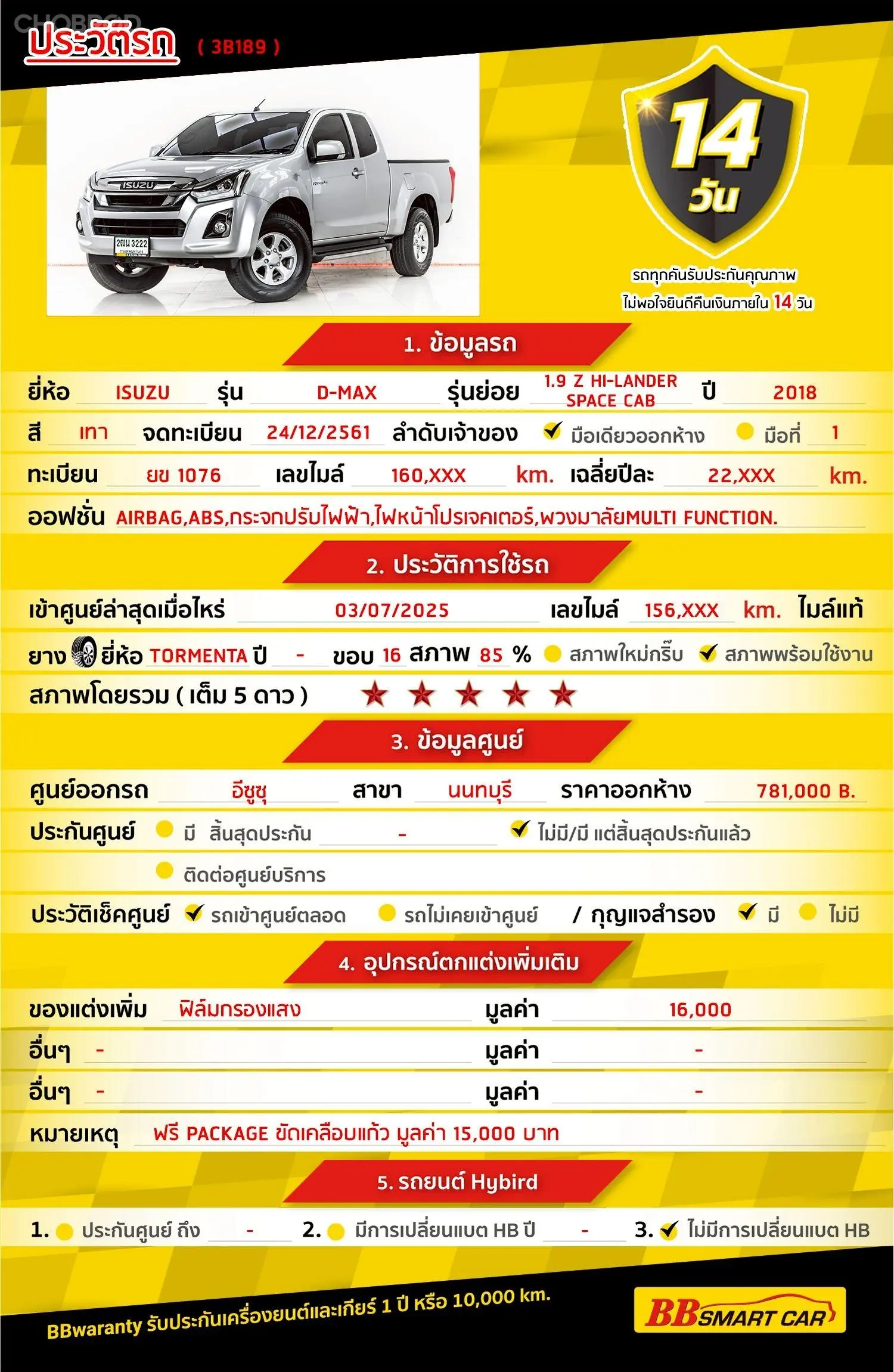 ISUZU D-MAX 1.9 Z HI-LANDER SPACECAB MT 2018 ออกรถ 0 บาท จัดได้ 389,000 บ. Line:@*******แสดงข้อมูล 🔥 จอง 199 บาท ส่งบัตรประชาชน รู้ผลอนุมัติภายใน 30 นาที ไม่ผ่านคืนเงินจองทุกกรณี 🔥 ซื้อรถกับ BB พร้อมให้คำปรึกษา แก้ทุกปัญหา ให้ทุกเรื่อง บริการ call center 24 ชม. 🔥 BB Care Plus รับประกันหลังการขาย สูงสุด 2 ปี หรือ 20,000 km. 🔥 มีรถให้เลือกมากกว่า 1,800 คัน สาขา 3 ถนนกาญจนาภิเษก ใกล้โลตัสบางใหญ่ รหัสรถ 3B189 ราคา 369,000 บ. ผ่อนเพียง 6,616 บ. Brand : ISUZU Year : 2018 Model : D-MAX Grade : 1.9 Z HI-LANDER SPACECAB Engine : 1900 cc. Type : ดีเซล Gearbox : A/T Color : เทา Mileage : 160,xxx km. (ซื้อสด ราคานี้ยังไม่รวมค่าดำเนินการ 10,000 บ.) 🚩 Price. 369,000 บาท ยอดจัด : 379,000 บาท เงินดาวน์ : ฟรีดาวน์ ประกันภัย : ฟรีประกันภัย 1 ปี ค่าดำเนินการ : 10,000 รวมออกรถ 0 บาท ผ่อน 36 = 12,512 บาท ผ่อน 48 = 9,695 บาท ผ่อน 60 = 8,073 บาท ผ่อน 72 = 7,251 บาท ผ่อน 84 = 6,616 บาท *เงื่อนไขเป็นไปตามที่ไฟแนนซ์กำหนด โปรโมชั่นพิเศษ สำหรับลูกค้าเครดิตดี 🚩เลือกรับเรทดอกเบี้ยพิเศษ 📍36 งวด = 2.59% 📍48 งวด = 2.89% 📍60 งวด = 3.29% 📍72 งวด = 4.49% 🔥 เงื่อนไข โปรโมชั่น ดอกเบี้ยเริ่มต้น 2.59% ตลอดอายุสัญญา - ยอดจัดไฟแนนซ์ 300,000-600,0000 บาท - ผ่อนสูงสุด 72 เดือน - เป็นลูกค้าประวัติดี - ค่าดำเนินการแคมเปญ 20,000 บาท (รวมในยอดจัดได้) 🎗Car Hightlight มาแล้วค่ะ ISUZU D-MAX เป็นรถที่มุ่งเน้นความประหยัดพลังงาน แต่มีสมรรถนะที่แรงขึ้น แรงบิดดีขึ้น รวมถึงการบำรุงรักษาที่ง่าย รถสภาพป้ายแดงค่ะ ราคาไม่แพง ไมล์แท้ รถดูแลศูนย์ตลอดค่ะ 🎗ภายใน ภายในสะอาดเรียบร้อย มาพร้อมกับแอร์เย็นๆ มี ไมล์ Digital กระจกมองข้างปรับไฟฟ้า แอร์ AUTO เบาะผ้า แอร์ กุญแจรีโมท-สัญญานกันขโมย วิทยุ - CD Cruise Control แอร์ราว Airbag พวงมาลัยเพาเวอร์ กระจกไฟฟ้า เบรค ABS เซ็นทรัลล๊อก พวงมาลัย Multifunction อ๊อฟชั่นครบคันเลยค่ะ สภาพใหม่มากค่ะ 🎗ภายนอก ไม่มีชนหนักหรือพลิกคว่ำค่ะ มี ไฟตัดหมอก ไฟเลี้ยวกระจกมองข้าง กล้องส่องหลัง ไฟซีนอน บันไดข้าง ไฟโปรเจคเตอร์ กระจกมองข้างพับไฟฟ้า ตัวรถสีเทา รถดูแลรักษาง่าย แถมช่วงล่างยังแน่นๆ ให้ความโดดเด่นเป็นเอกลักษณ์ของ ISUZU D-MAX ทดลองขับแล้วช่วงล่างและเครื่องยนต์ยังแน่นค่ะ 🎗ความคุ้มค่า รถสภาพนี้หายากมากค่ะบอกเลย รถไมล์แท้อีกด้วย คัดเลือกคันนี้มาแล้วค่ะสภาพดีมากๆ เทียบกับราคานี้ถือว่าคุ้มค่ามากๆค่ะ มาดูรถไม่ผิดหวังแน่นนอนค่ะ ⭐การรับประกันหลังการขาย BB Care Plus สูงสุด 2 ปี หรือ 20,000 km. ด้วยช่างที่ผ่านการอบรมจากศูนย์ชั้นนำของประเทศ 🎉Special offer เฉพาะ บีบีสมาร์ทคาร์ ที่นี่ที่เดียว ⭐ดอกเบี้ยเริ่มต้น 2.59% มีไฟแนนซ์รองรับหลายที่ค่ะ ⭐ฟรี!! แพคเก็จ ขัดเคลือบแก้ว มูลค่า 15,000 บาท ทุกคัน ⭐อนุมัติไว 30 นาที นำเอกสารมาให้ครบรับรถกลับบ้านทันทีค่ะ ⭐BB Care Plus รับประกันหลังการขาย สูงสุด 2 ปี หรือ 20,000 km. ⭐มี 6 สาขา ในกรุงเทพและปริมณฑลใกล้บ้านท่