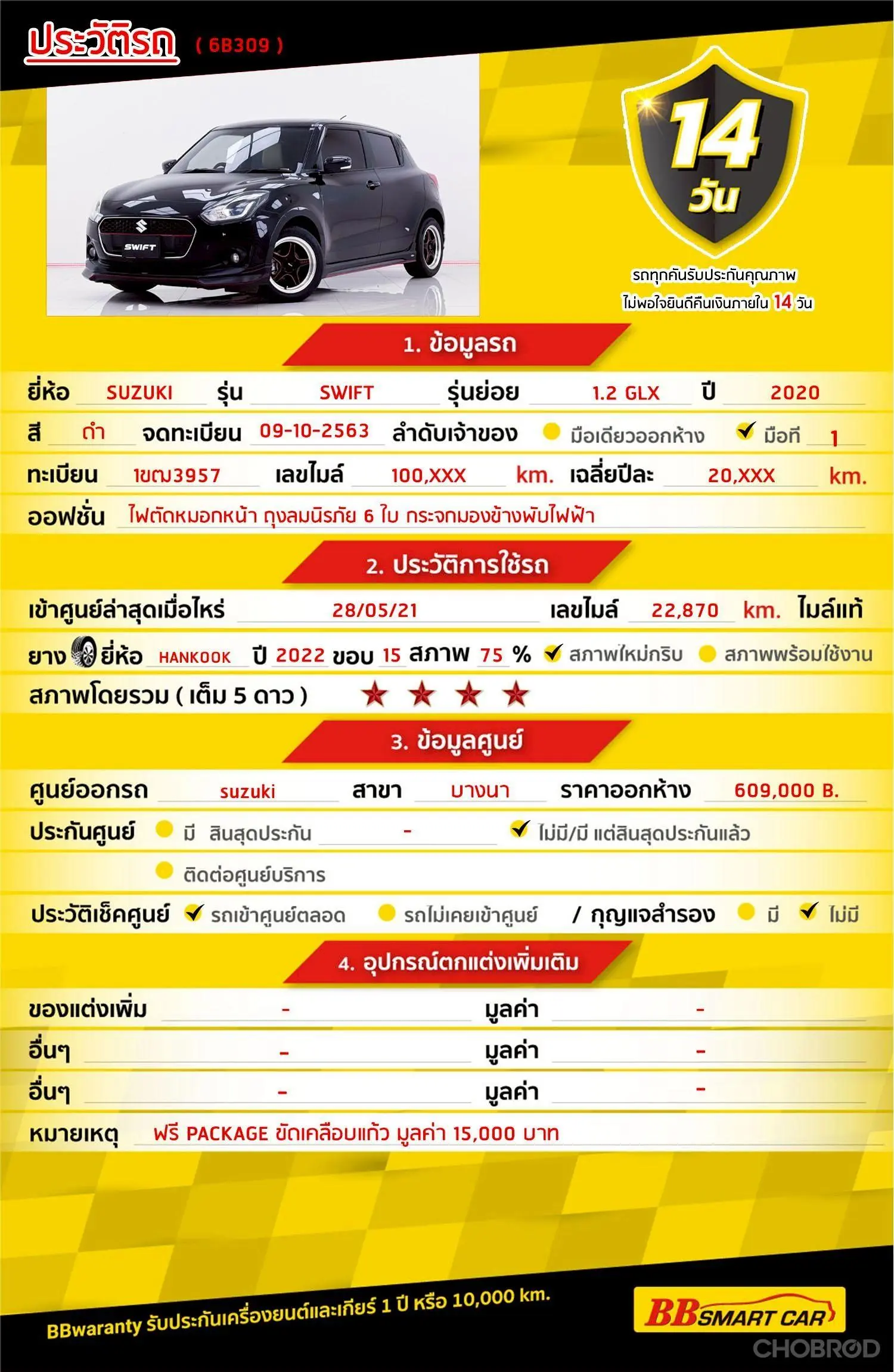 SUZUKI SWIFT 1.2 GLX AT 2020 ออกรถ 0 บาท จัดได้ 339,000 บ. Line:@bbcar06 🔥จอง 199 บาท ส่งบัตรประชาชน รู้ผลพิจารณาภายใน 30 นาที ไม่ผ่านคืนเงินจองทุกกรณี 🔥ซื้อรถกับ BB พร้อมให้คำปรึกษา แก้ทุกปัญหา ให้ทุกเรื่อง บริการ call center 24 ชม. 🔥BB Care Plus รับประกันหลังการขาย สูงสุด 2 ปี หรือ 20,000 km.. 🔥มีรถให้เลือกมากกว่า 1,800 คัน สาขา 6 ศูนย์รวมรถยนต์ไอคาร์สยาม กาญจนาภิเษก รหัสรถ 6B309 ราคา 319,000 บาท ผ่อนเพียง 5,508 บาท Brand. : SUZUKI Year. : 2020 Model. : SWIFT Grade. : 1.2 GLX Engine. : 1,200 CC Type. : เบนซิน Gearbox : AT Color. : ดำ Mileage. : 100,xxx KM. (ซื้อสด ราคานี้ยังไม่รวมค่าดำเนินการ 10,000 บ.) 🚩 Price. 319,000 บาท ยอดจัด : 329,000 บาท เงินดาวน์ : 0 บาท ประกันภัย : ฟรีประกันภัย 1 ปี ค่าดำเนินการ : 10,000 บาท รวมออกรถ : 0 บาท ผ่อน 36 = 10,597 บาท ผ่อน 48 = 8,152 บาท ผ่อน 60 = 6,774 บาท ผ่อน 72 = 6,059 บาท ผ่อน 84 = 5,508 บาท เงื่อนไขเป็นไปตามที่ไฟแนนซ์กำหนด โปรโมชั่นพิเศษ สำหรับลูกค้าเครดิตดี 🚩เลือกรับเรทดอกเบี้ยพิเศษ 📍36 งวด = 1.29 % 📍48 งวด = 1.99 % 📍60 งวด = 2.39 % 📍72 งวด = 3.59 % 🔥 เงื่อนไข โปรโมชั่น ดอกเบี้ยเริ่มต้น 1.29% ตลอดอายุสัญญา - ยอดจัดไฟแนนซ์ 300,000-600,0000 บาท - ผ่อนสูงสุด 72 เดือน - เป็นลูกค้าประวัติดี พนักงานประจำเงินเดือน 20,000 ขึ้นไป - ค่าดำเนินการแคมเปญ 20,000 บาท (รวมในยอดจัดได้) 🎗Car Hightlight รถสวยๆ วันนี้ขอแนะนำ SUZUKI SWIFT 1.2 GLX AT 2020 ออฟชั่น 12.2.1 : ฟีเจอร์ความปลอดภัยครบ (6 ถุงลม + ESP + HHC) 12.2.2 : ภายในสปอร์ต มี Cruise Control และแอร์ออโต้ 12.2.3 : ประหยัดน้ำมันมาก (เฉลี่ยราว 20 กม./ลิตร) 🎗ภายใน จอ LCD เล่น DVD กระจกมองข้างปรับไฟฟ้า Cruise Control แอร์ AUTO พวงมาลัยเพาเวอร์ เซ็นทรัลล๊อก กระจกไฟฟ้า พวงมาลัย Multifunction Airbag เบรค ABS เบาะหนัง 🎗ภายนอก ไฟตัดหมอก ล้อแม็ก ไฟโปรเจคเตอร์ ไฟเลี้ยวกระจกมองข้าง 🎗ความคุ้มค่า สำหรับคันนี้หากเปรียบเทียบราคากับคุณภาพ คันนี้ถือว่าคุ้มค่ามากค่ะ ผ่อนสบายๆก็มีรถขับได้ รถดีมีคุณภาพแบบนี้รีบตัดสินใจซื้อได้เลราคานี้มาไวไปไวนะคะ ⭐️การรับประกันหลังการขาย BB Care Plus สูงสุด 2 ปี หรือ 20,000 km. ด้วยช่างที่ผ่านการอบรมจากศูนย์ชั้นนำของประเทศ 🎉🎉Special offer เฉพาะ บีบีสมาร์ทคาร์ ที่นี่ที่เดียว ⭐️ ดอกเบี้ยเริ่มต้น 1.29% มีไฟแนนซ์รองรับหลายที่ค่ะ ⭐️ ฟรี!! แพคเก็จ ขัดเคลือบแก้ว มูลค่า 15,000 บาท ทุกคัน ⭐️ อนุมัติไว 30 นาที นำเอกสารมาให้ครบรับรถกลับบ้านทันทีค่ะ ⭐️ BB Care Plus รับประกันหลังการขาย สูงสุด 2 ปี หรือ 20,000 km. ⭐️ มี 6 สาขา ในกรุงเทพและปริมณฑลใกล้บ้านท่าน ⭐️ รถทุกคันผ่านตรวจสอบ Inspection เรียบแล้วค่ะ ผ่าน 5 ดาวทุกคันค่ะ ⭐️ เซลล์ทุกท่านเป็นมืออาชีพพร้อมให้บริการทุกท่านแน่นอนค่ะ