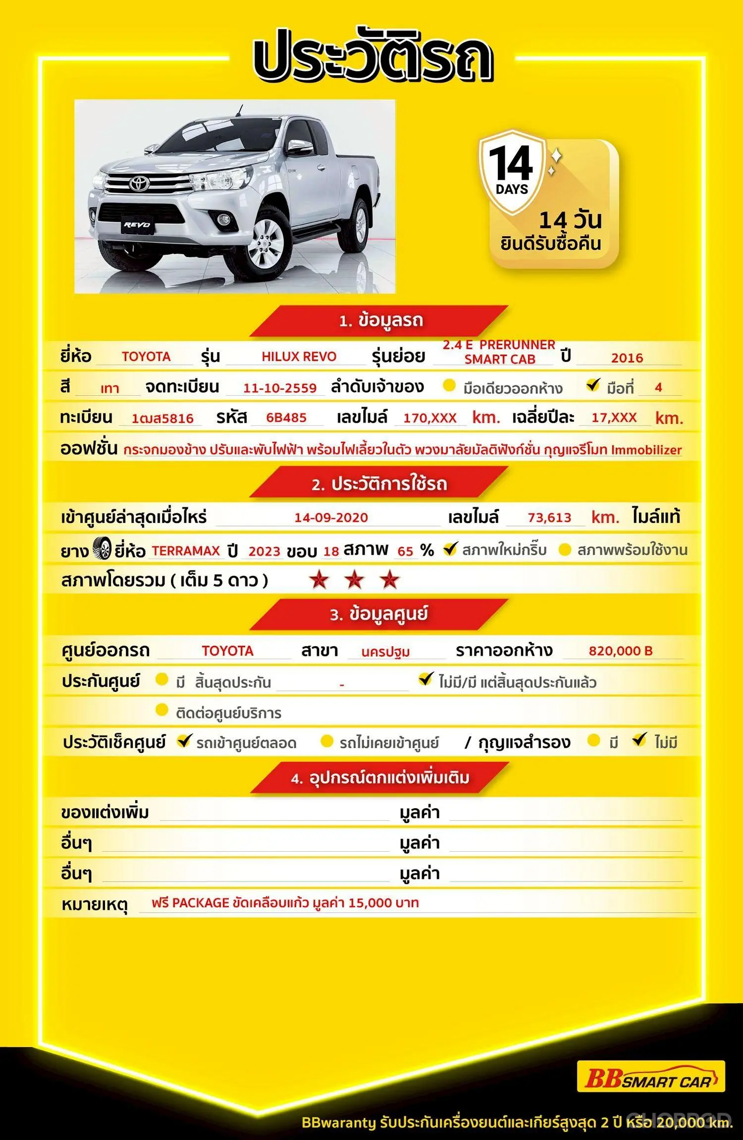 TOYOTA HILUX REVO 2.4 E SMART CAB PRERUNNER AT 2016 ออกรถ 0 บาท รหัส 6B485 Line: ID @bbcar06 🔥มีรถให้เลือกมากกว่า 1,800 คัน 🔥รถทุกคันผ่านตรวจสอบ Inspection เรียบแล้วค่ะ ผ่าน 5 ดาวทุกคันค่ะ 🔥ซื้อรถกับ BB พร้อมให้คำปรึกษา แก้ทุกปัญหา ให้ทุกเรื่อง บริการ call center 24 ชม. 🔥BB Care Plus รับประกันหลังการขาย สูงสุด 2 ปี หรือ 20,000 km. 🔥ฟรี!! แพคเก็จ ขัดเคลือบแก้ว มูลค่า 15,000 บาท ทุกคัน 🔥มี 6 สาขา ในกรุงเทพและปริมณฑลใกล้บ้านท่าน สาขา 6 ศูนย์รวมรถยนต์ไอคาร์สยาม กาญจนาภิเษก รหัสรถ 6B485 ราคา 369,000 บาท ผ่อนเพียง 7,089 บาท Brand. : TOYOTA Year. : 2016 Model. : HILUX REVO Grade. : 2.4 E SMART CAB PRERUNNER Engine. : 2,400 CC Type. : ดีเซล Gearbox : AT Color. : เทา Mileage. : 170,XXX KM. (ซื้อสด ราคานี้ยังไม่รวมค่าดำเนินการ 10,000 บ.) 🚩 Price. 369,000 บาท ยอดจัด : 379,000 บาท เงินดาวน์ : 0 บาท ประกันภัย : ฟรีประกันภัย 1 ปี ค่าดำเนินการ : 10,000 บาท รวมออกรถ : 0 บาท ผ่อน 36 งวด = 12,850 บาท ผ่อน 48 งวด = 10,033 บาท ผ่อน 60 งวด = 8,411 บาท ผ่อน 72 งวด = 7,590 บาท ผ่อน 84 งวด = 7,089 บาท เงื่อนไขเป็นไปตามที่ไฟแนนซ์กำหนด โปรโมชั่นพิเศษ สำหรับลูกค้าเครดิตดีลือกรับเรทดอกเบี้ยพิเศษ 📍36 งวด = 2.59 % 📍48 งวด = 2.89 % 📍60 งวด = 3.29 % 📍72 งวด = 4.49 % 🔥 เงื่อนไข โปรโมชั่น ดอกเบี้ยเริ่มต้น 2.59% ตลอดอายุสัญญา - ยอดจัดไฟแนนซ์ 300,000-600,000 บาท - ผ่อนสูงสุด 72 เดือน - เป็นลูกค้าประวัติดี พนักงานประจำเงินเดือน 20,000 ขึ้นไป - ค่าดำเนินการแคมเปญ 20,000 บาท (รวมในยอดจัดได้) 🎗Car Hightlight รถสวยๆ วันนี้ขอแนะนำ TOYOTA HILUX REVO 2.4 E SMART CAB PRERUNNER AT 2016 จุดเด่นออฟชั่น 12.2.1 : กระจกไฟฟ้าพร้อมไฟเลี้ยวในตัว 12.2.2 :ระบบความปลอดภัยพื้นฐานครบ 12.2.3 : เครื่องเสียง 🎗ภายใน - เบรค ABS กุญแจรีโมท-สัญญานกันขโมย พวงมาลัยเพาเวอร์ พวงมาลัย Multifunction เบาะหนัง กระจกมองข้างปรับไฟฟ้า แอร์ Airbag กระจกไฟฟ้า วิทยุ - CD 🎗ภายนอก - กระจกมองข้างพับไฟฟ้า ไฟเลี้ยวกระจกมองข้าง ล้อแม็ก 🎗ความคุ้มค่า สำหรับคันนี้หากเปรียบเทียบราคากับคุณภาพ คันนี้ถือว่าคุ้มค่ามากค่ะ ผ่อนสบายๆก็มีรถขับได้ รถดีมีคุณภาพแบบนี้รีบตัดสินใจซื้อได้เลราคานี้มาไวไปไวนะคะ