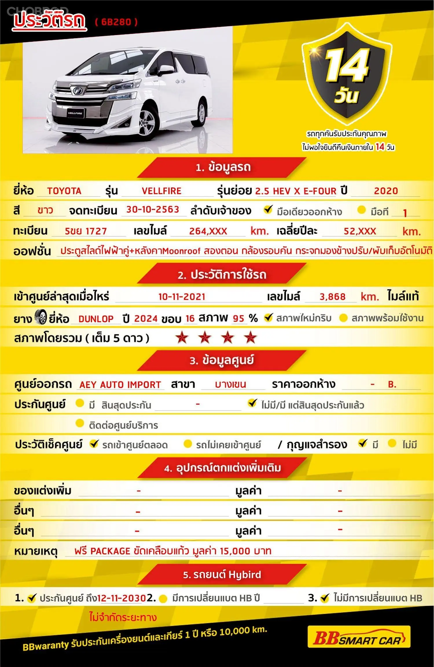 TOYOTA VELLFIRE 2.5 HEV X E-FOUR AT 2020 ออกรถ 0 บาท จัดได้ 1,579,000 บ. Line:@*******แสดงข้อมูล 🔥จอง 199 บาท ส่งบัตรประชาชน รู้ผลพิจารณาภายใน 30 นาที ไม่ผ่านคืนเงินจองทุกกรณี 🔥ซื้อรถกับ BB พร้อมให้คำปรึกษา แก้ทุกปัญหา ให้ทุกเรื่อง บริการ call center 24 ชม. 🔥BB Care Plus รับประกันหลังการขาย สูงสุด 2 ปี หรือ 20,000 km.. 🔥มีรถให้เลือกมากกว่า 1,800 คัน สาขา 6 ศูนย์รวมรถยนต์ไอคาร์สยาม กาญจนาภิเษก รหัสรถ 6B280 ราคา 1,559,000 บาท ผ่อนเพียง 27,387 บาท Brand. : TOYOTA Year. : 2020 Model. : VELLFIRE Grade. : 2.5 HEV X E-FOUR Engine. : 2,500 CC Type. : เบนซิน,ระบบไฟฟ้า Gearbox : AT Color. : ขาว Mileage. : 264,xxx KM. (ซื้อสด ราคานี้ยังไม่รวมค่าดำเนินการ 10,000 บ.) 🚩 Price. 1,559,000 บาท ยอดจัด : 1,569,000 บาท เงินดาวน์ : 0 บาท ประกันภัย : ฟรีประกันภัย 1 ปี ค่าดำเนินการ : 10,000 บาท รวมออกรถ : 0 บาท ผ่อน 36 = 51,797 บาท ผ่อน 48 = 40,138 บาท ผ่อน 60 = 33,423 บาท ผ่อน 72 = 30,019 บาท ผ่อน 84 = 27,387 บาท เงื่อนไขเป็นไปตามที่ไฟแนนซ์กำหนด โปรโมชั่นพิเศษ สำหรับลูกค้าเครดิตดี 🚩เลือกรับเรทดอกเบี้ยพิเศษ 📍36 งวด = 1.29 % 📍48 งวด = 1.99 % 📍60 งวด = 2.39 % 📍72 งวด = 3.59 % 🔥 เงื่อนไข โปรโมชั่น ดอกเบี้ยเริ่มต้น 1.29% ตลอดอายุสัญญา - ยอดจัดไฟแนนซ์ 300,000-600,0000 บาท - ผ่อนสูงสุด 72 เดือน - เป็นลูกค้าประวัติดี พนักงานประจำเงินเดือน 20,000 ขึ้นไป - ค่าดำเนินการแคมเปญ 20,000 บาท (รวมในยอดจัดได้) 🎗Car Hightlight รถสวยๆ วันนี้ขอแนะนำ TOYOTA VELLFIRE 2.5 HEV X E-FOUR AT 2020 ออฟชั่น 12.2.1 :ประตูสไลด์ไฟฟ้าคู่ + หลังคา Moonroof สองตอน หรูและใช้งานสะดวก 12.2.2 :กล้องรอบคัน + ระบบความปลอดภัยครบ มั่นใจทุกการขับขี่ 12.2.3 :เบาะแถวสองแบบ Captain Seat ปรับไฟฟ้า + ที่วางขา นั่งสบายระดับ VIP 🎗ภายใน เบรค ABS กระจกไฟฟ้า จอ LCD เล่น DVD แอร์ AUTO พวงมาลัย Multifunction กระจกมองข้างปรับไฟฟ้า ซันรูฟ เซ็นทรัลล๊อก เบาะหนัง Airbag พวงมาลัยเพาเวอร์ 🎗ภายนอก ไฟเลี้ยวกระจกมองข้าง ล้อแม็ก ไฟตัดหมอก ไฟโปรเจคเตอร์ 🎗ความคุ้มค่า สำหรับคันนี้หากเปรียบเทียบราคากับคุณภาพ คันนี้ถือว่าคุ้มค่ามากค่ะ ผ่อนสบายๆก็มีรถขับได้ รถดีมีคุณภาพแบบนี้รีบตัดสินใจซื้อได้เลราคานี้มาไวไปไวนะคะ ⭐️การรับประกันหลังการขาย BB Care Plus สูงสุด 2 ปี หรือ 20,000 km. ด้วยช่างที่ผ่านการอบรมจากศูนย์ชั้นนำของประเทศ 🎉🎉Special offer เฉพาะ บีบีสมาร์ทคาร์ ที่นี่ที่เดียว ⭐️ ดอกเบี้ยเริ่มต้น 1.29% มีไฟแนนซ์รองรับหลายที่ค่ะ ⭐️ ฟรี!! แพคเก็จ ขัดเคลือบแก้ว มูลค่า 15,000 บาท ทุกคัน ⭐️ อนุมัติไว 30 นาที นำเอกสารมาให้ครบรับรถกลับบ้านทันทีค่ะ ⭐️ BB Care Plus รับประกันหลังการขาย สูงสุด 2 ปี หรือ 20,000 km. ⭐️ มี 6 สาขา ในกรุงเทพและปริมณฑลใกล้บ้านท่าน ⭐️ รถทุกคันผ่านตรวจสอบ Inspection เรียบแล้วค่ะ ผ่าน 5 ดาวทุกคันค่ะ ⭐️ เซลล์ทุกท่านเป็นมืออาชีพพร้อมให้บริการทุกท่านแน่นอนค่ะ